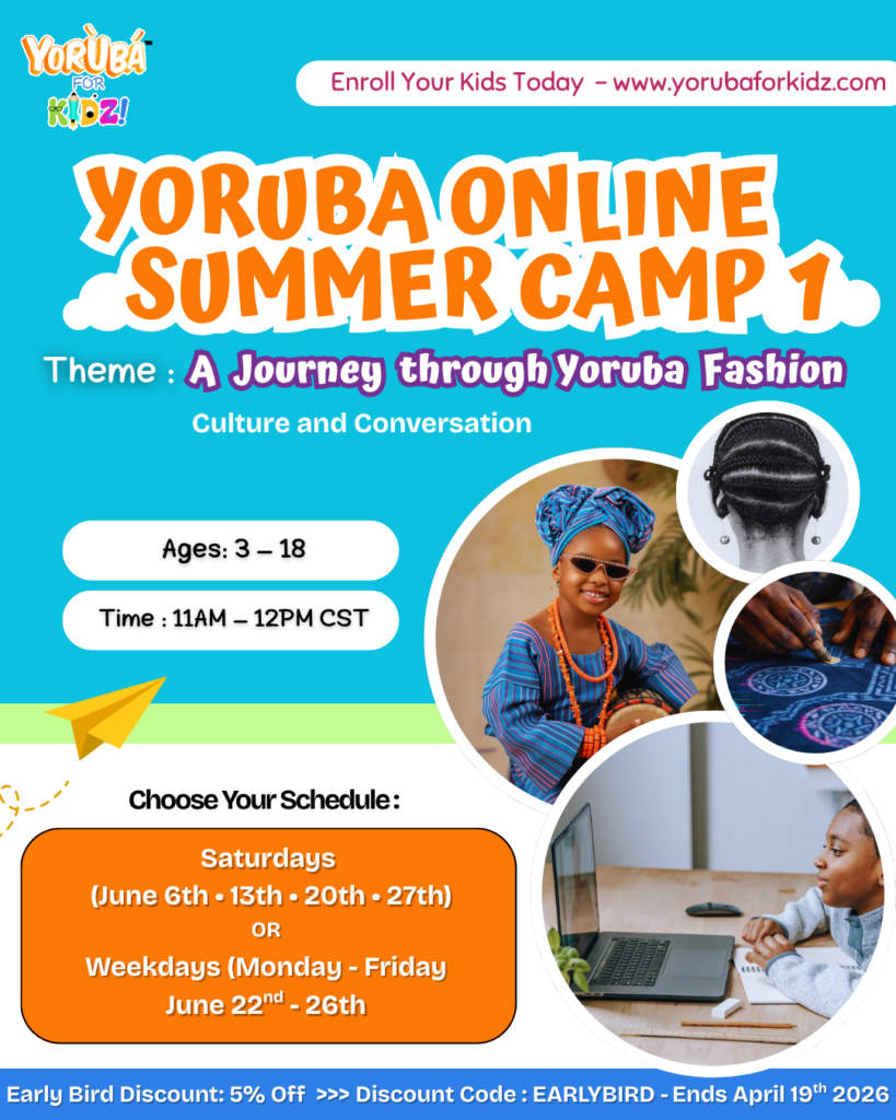 They’ll be discovering why we dress the way we do, enjoy stories we pass from generation to generation, learning to initiate or respond to conversation in yoruba, meeting other kids, sharing experiences, and building real friendships!